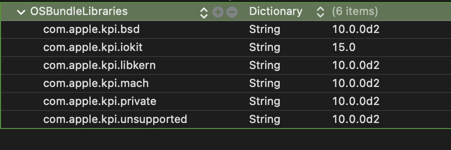 Extension 'com.foo.bar' has invalid properties: [Linking com.apple.kpi.private requires an Apple kext (ANY OF: [ALL OF: [ANY OF: [Property CFBundleGetInfoString must have valid Apple copyright string, Property NSHumanReadableCopyright must have valid Apple copyright string], Property 'CFBundleIdentifier' should have type String with prefix: com.apple], Properties under OSBundleLibraries must satisfy: [Property 'com.apple.kpi.private' should be absent]])]" UserInfo={NSLocalizedDescription=Validating extension failed: Kext com.banana.ntfs-mod v1.1.1 in executable kext bundle com.banana.ntfs-mod at xxx: