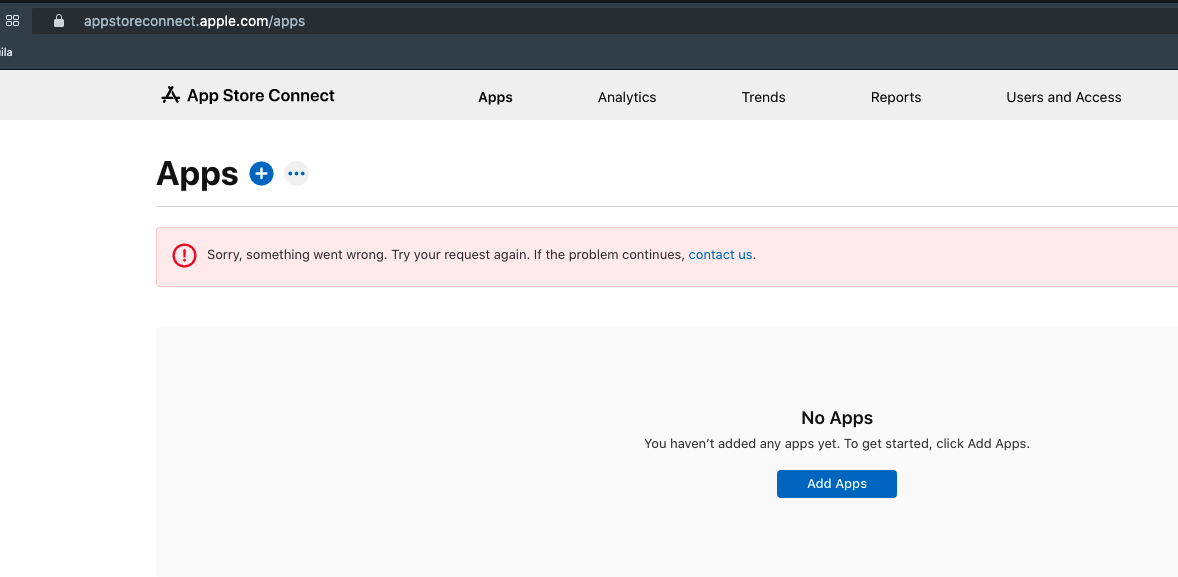 There is literally an error in the Ajax request when I try to listen to the network via browser developer tools to get the Users List from the site to the AppStore Connect API. Saying