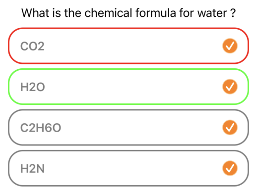 question = QuestionContainer(questions: [Question(number: 1, question: "What is the chemical formula for water ?", sections: Section(a: "CO2", b: "H2O", c: "C2H6O", d: "H2N"), price: 5, correct: "H2O")])