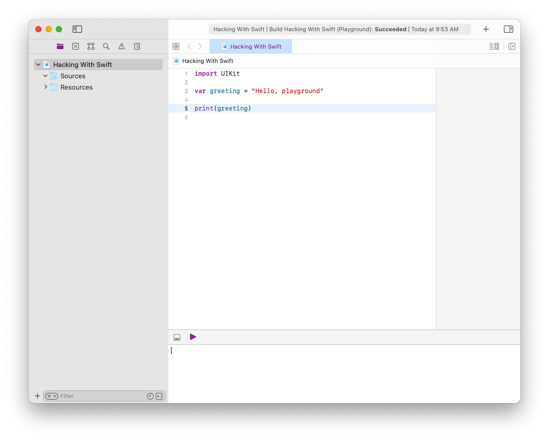 Hi! I'm fairly new to Swift and was trying to mess around with it in Xcode and Playgrounds. The thing is that it refuses to print anything to the console. I have it on "automatic run" (signified by the purple play button) but have also tried it in "manual run". Does anyone have an idea about what is going on?
