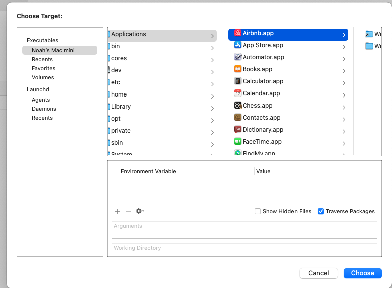 I'm trying to profile app launch of an iOS app running on an M1 Mac. After downloading a Mac compatible app from the iOS App Store (Airbnb) I'm able to select it in instruments by selecting the .app in /Applications