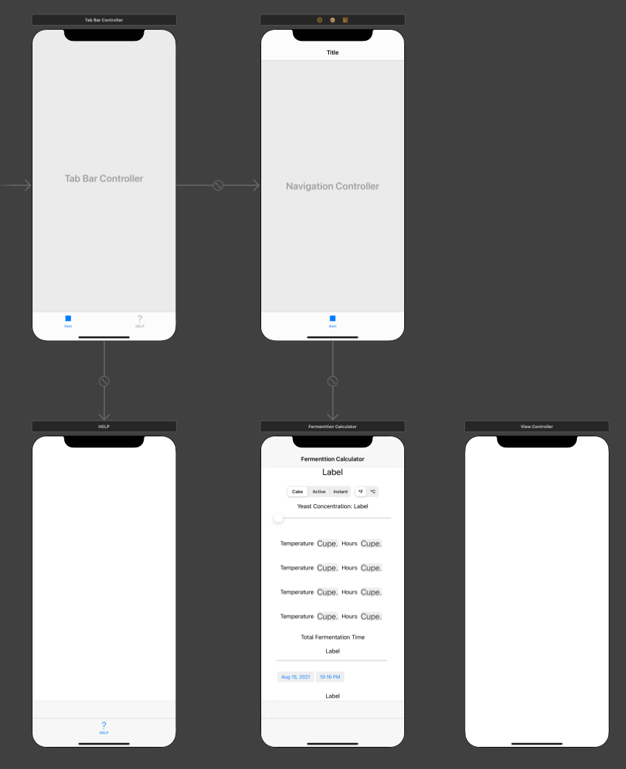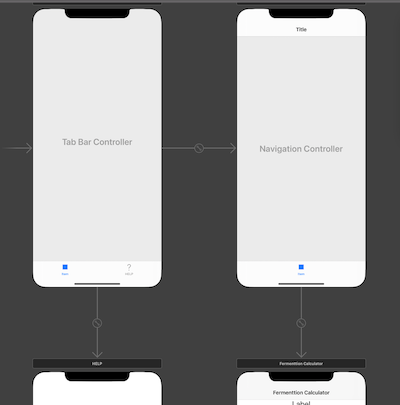 I hope that helps - The storyboard to the lower right is to be connected to the Fermentation Calculator eventually via the navigation controller.