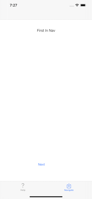 • But when you run the app, the tabBarItems do appear in the view in navigation stack (the one with First In Nav label)