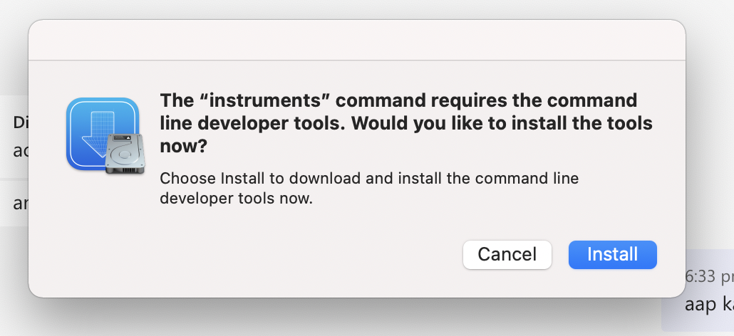 I updated my xcode 12.5 to xocde 13 and after that Install command line developer tool popup come & ask to install "Instruments". I click on install & accepted license. and installation finished.
