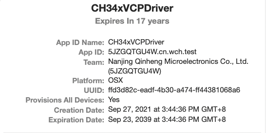We are the developer team of Nanjing Qinheng Microelectronics Co., Ltd. Recently, we have carried out device driver development and system adaptation for a variety of USB-to-serial chips. At present, our project is stagnant in the release stage because the "Provisioning Profile" does not contain our vendor ID(0x1A86). The release process of this driver will affect millions of users worldwide. We hope that the "Provisioning Profile" can be completed more quickly. This is very important for our customer and the experience of Apple's Big Sur.