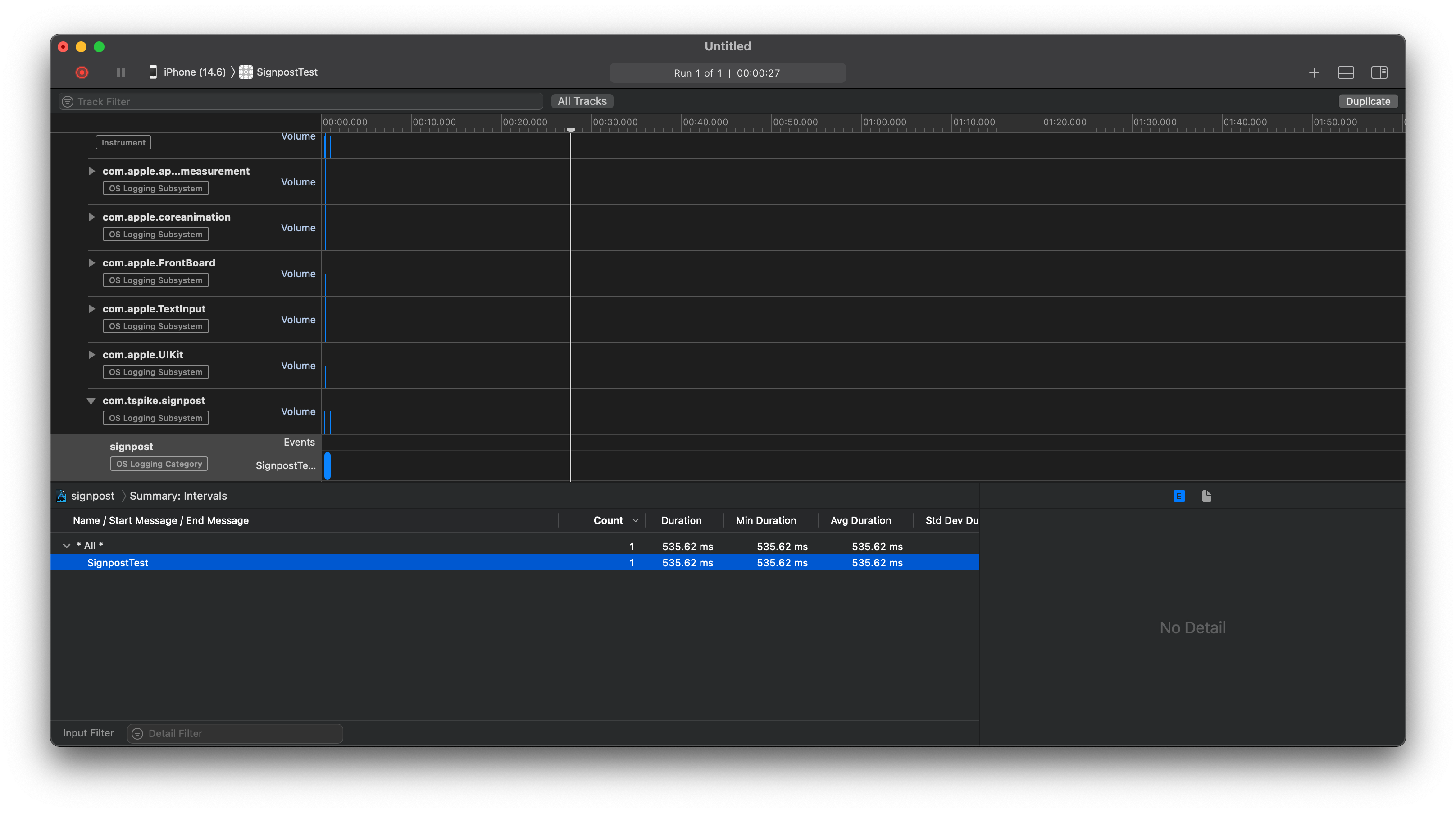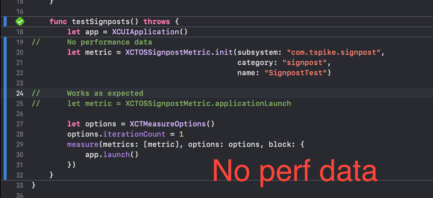 I'm attempting to automate some performance tests we currently do manually using signposts and Instruments.