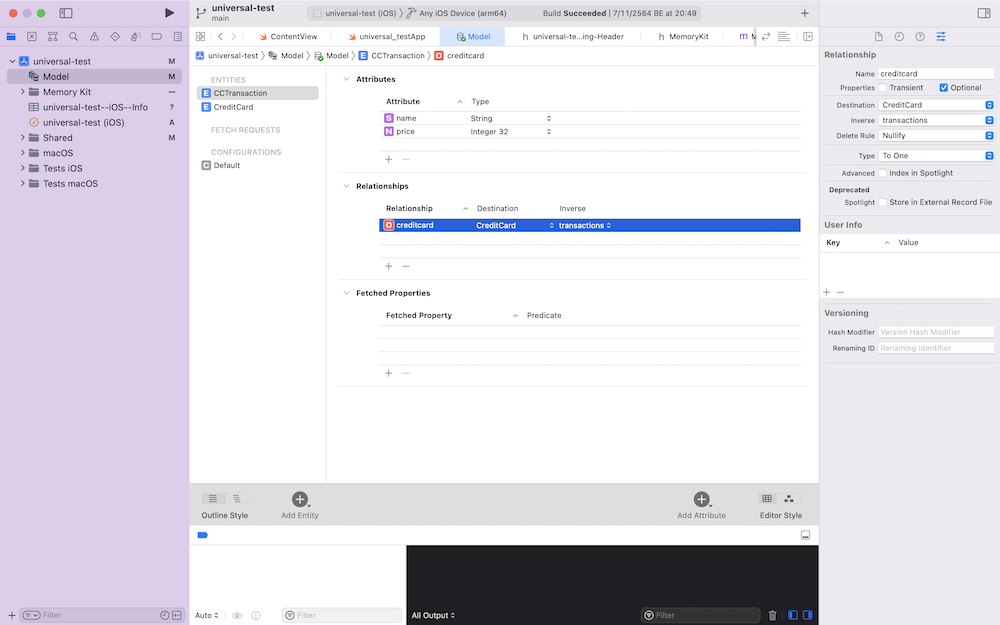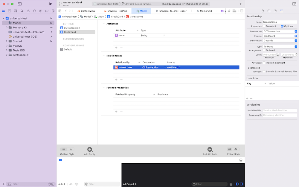 print(creditCard.transactions.count) // will have a value of 0 except the device that records the relationship.