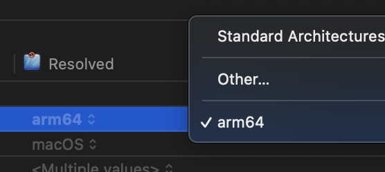 Can you set the architecture in both the project’s and target’s build settings? When I set the architecture to arm64 in both places, I only get the option to build for ‘My Mac’ and ‘Any Mac (Apple Silicon)’ in Xcode 13.1 (13A1030d)