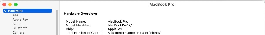 MacBook Pro M1 2020 Model with part number MYD82HN/A