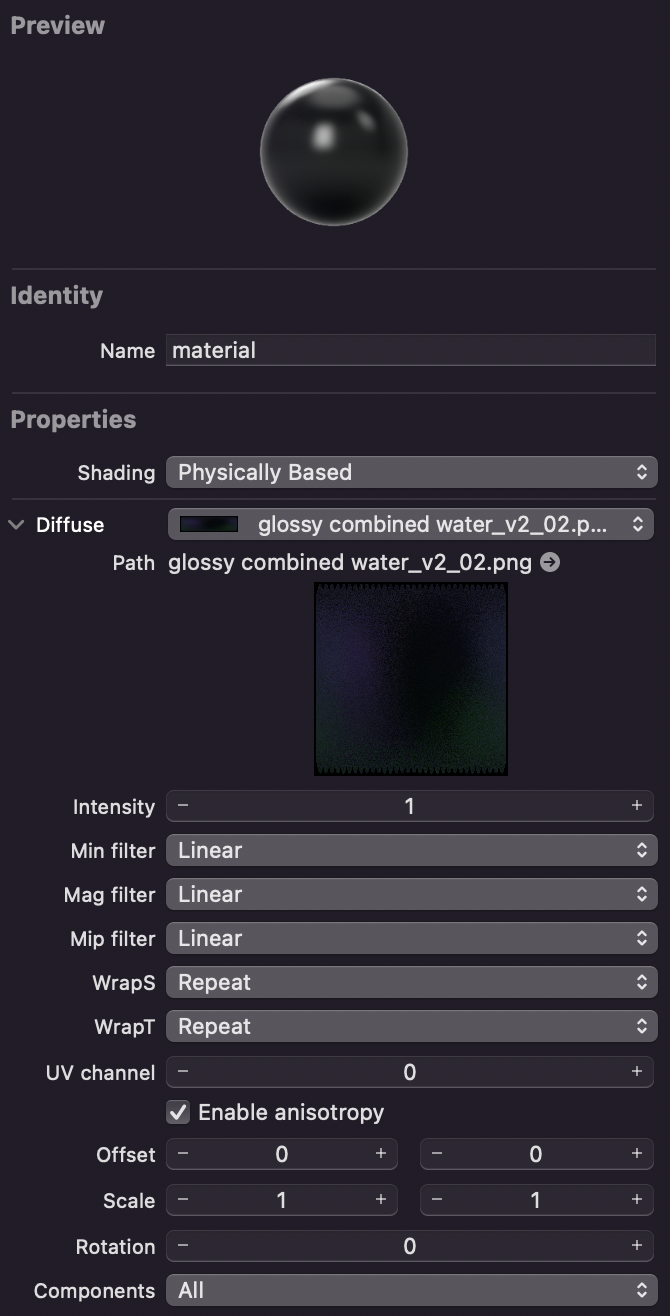 I'm using a material with Physically based shading, and I'm trying to apply a .png texture to it in the diffuse field, in the preview of the material it looks fine, but already in the scene, it seems as if it's not affecting the mesh.