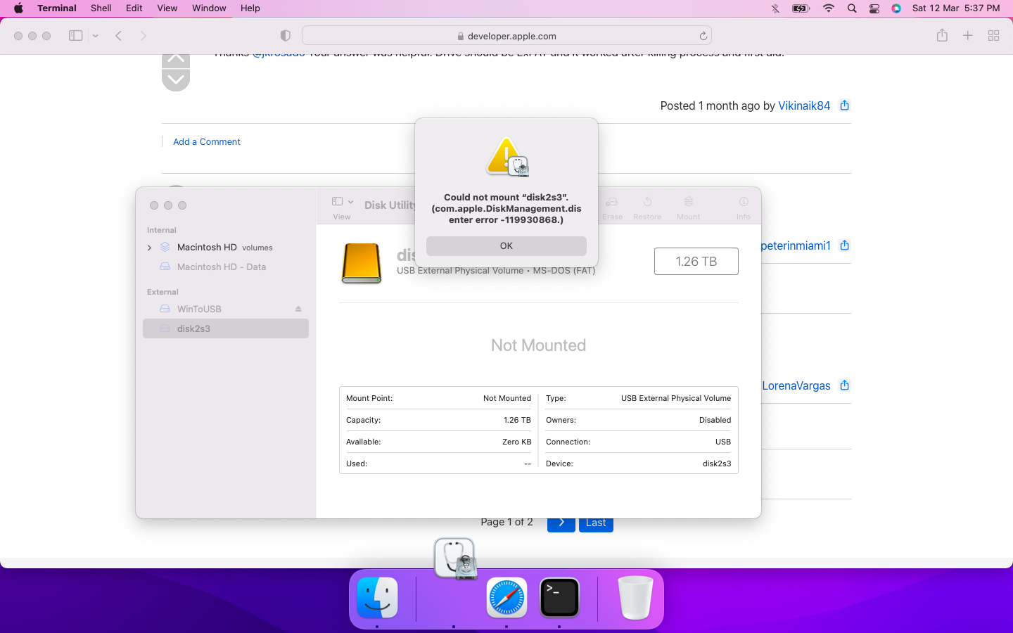 I AM UNABLE TO MOUNT MY DISK IT SAYS DISK MANAGEMENT ENTER ERROR -119930868