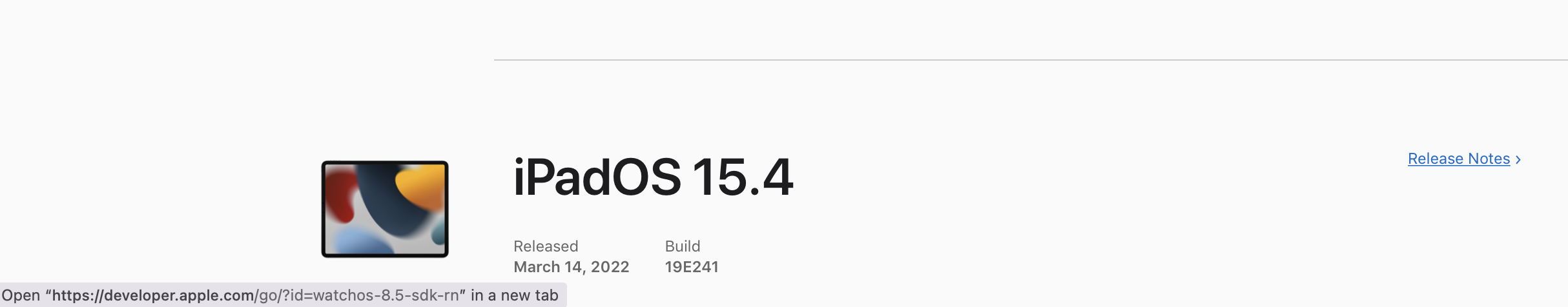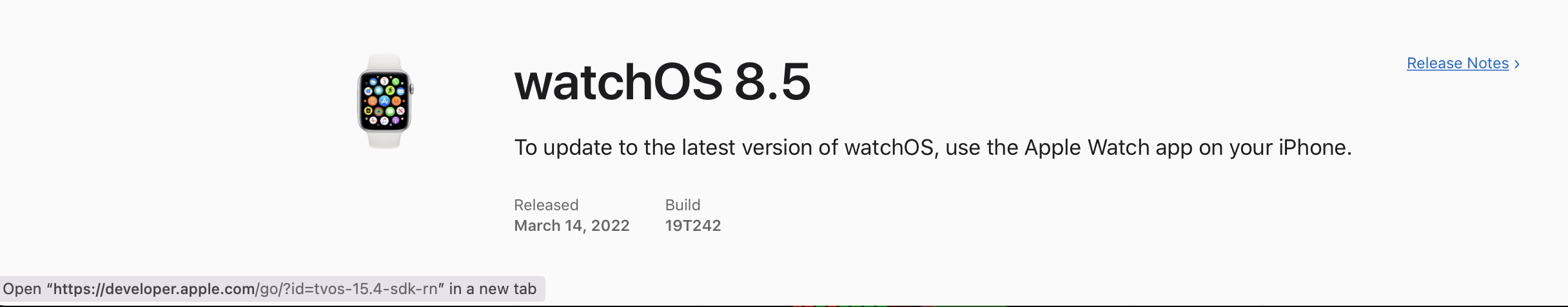 WatchOS 8.5 release notes opens the tvOS Release notes and the iPadOS 15.4 release notes opens the watchOS release notes.