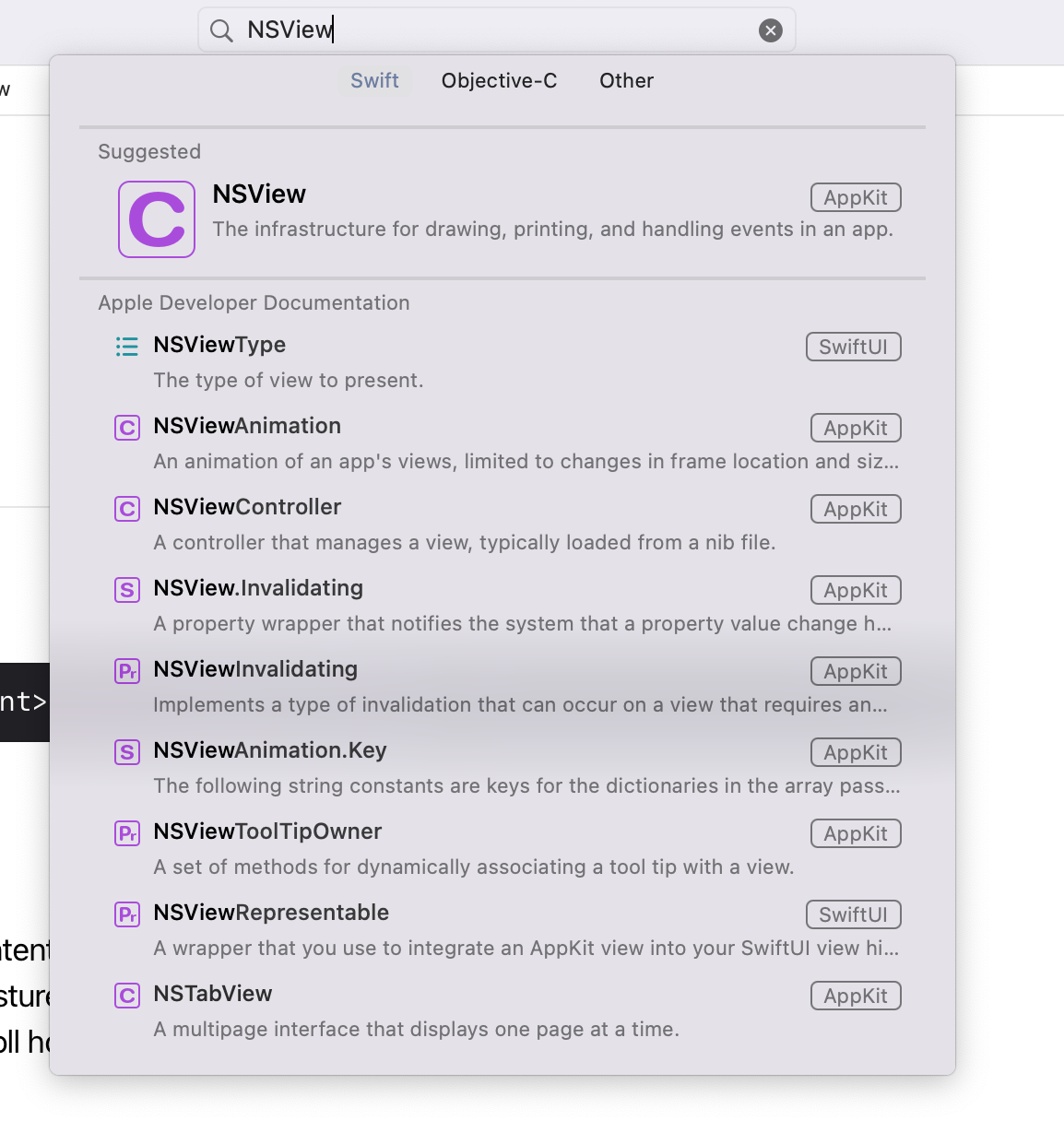 xcode 13.3 Documentation Can't Find Objects Like NSView...