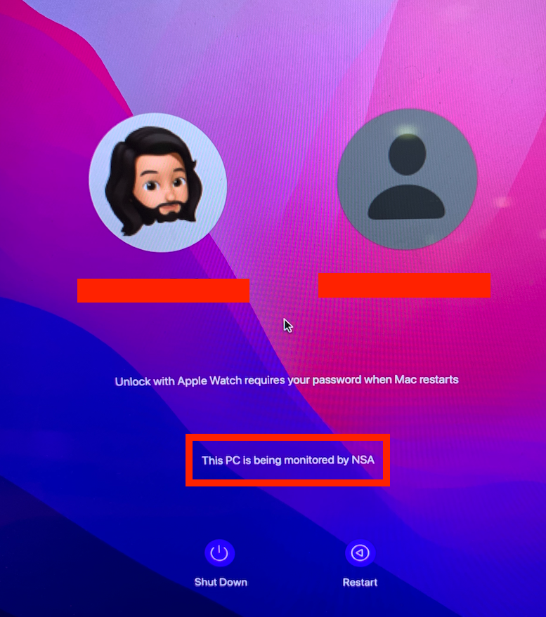 On my login screen, I see the message: "This PC is being monitored by NSA" as shown on the attached screenshot.