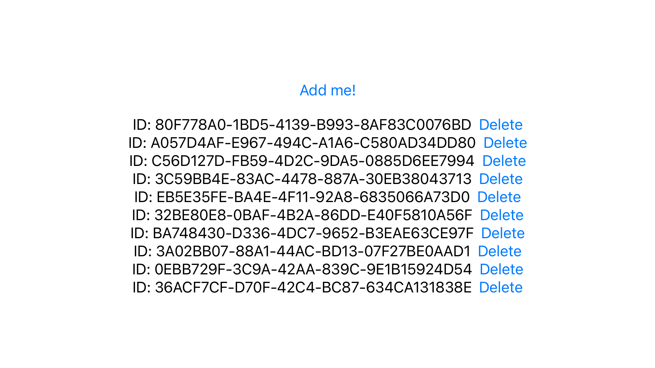 I have a simple project where I have a UUID string followed by a tap button as shown below. If one taps the Add me, the app will list a new instance of a View (KeywordRow).
