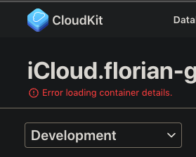 When I reload the CloudKit Console after the init got into the 30s timeout. The Console has no more trouble retrieving the container details. Weird.
