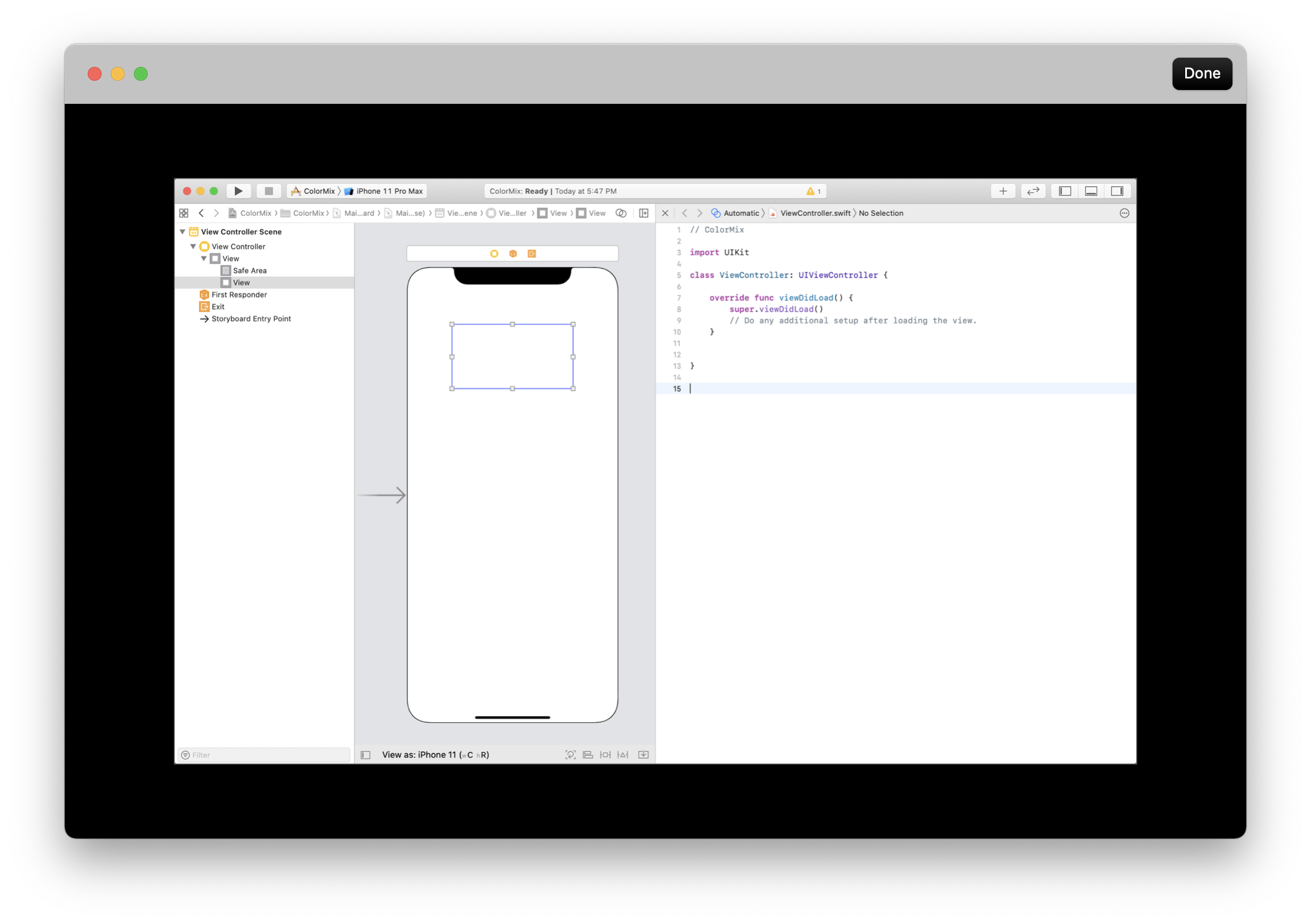 - Give this class to the ViewController (Identity inspector)