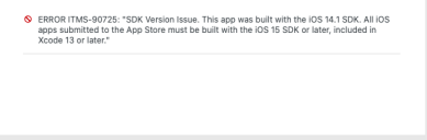 I have been using below versions to build the application and those are same as per the requirement specified by Apple, but still it is giving me the below error when I’m trying to upload the application to testflight.