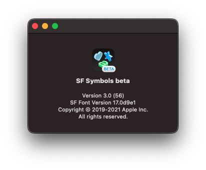 state this is SF Symbols beta 4. Though downloading, installing, and launching Applications->SF Symbols beta then selecting SF Symbols beta->"About SF Symbols beta" in the menu pulldown it displays version 3 with older copyright. This does not appear to be the new beta 4.