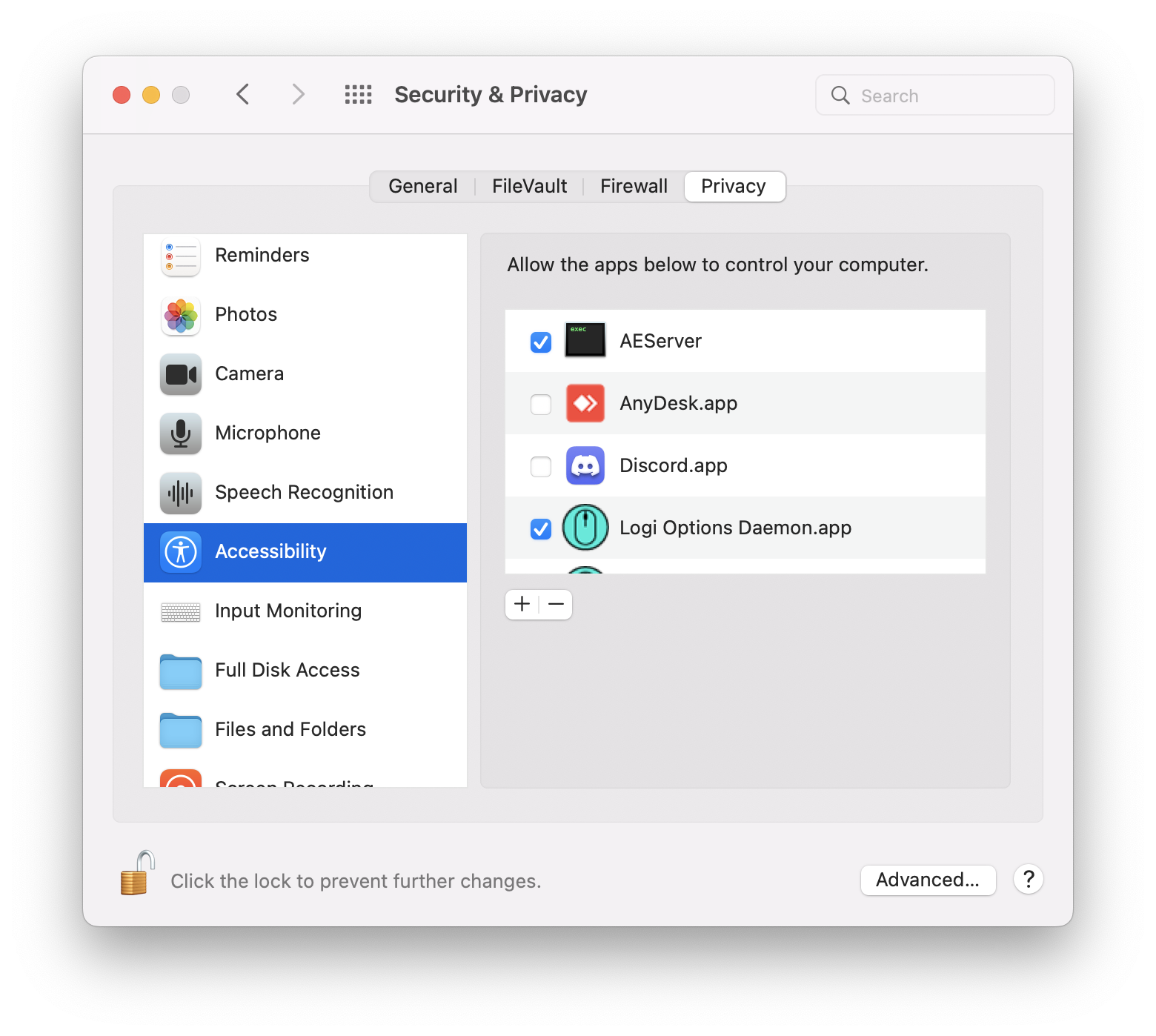 I've granted "Accessibility" permissions to the AEServer in System Preferences