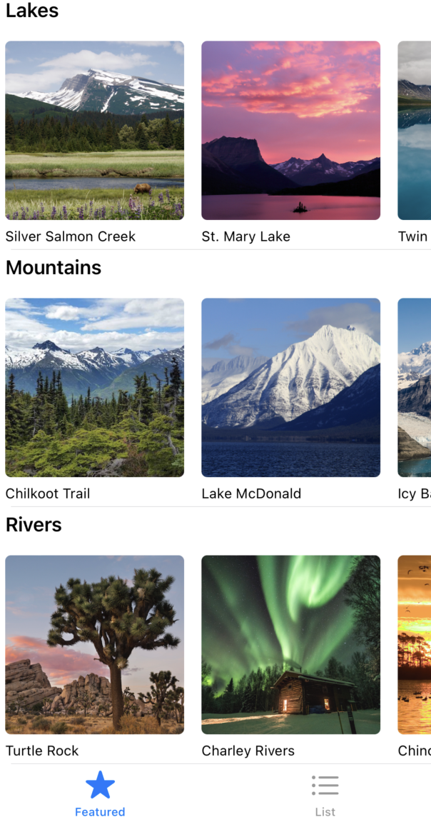 Hello, I'm just starting with Xcode and I was trying to learn with apples examples. I wanted to edit one off the example Apps to my liking but don't really know how to do so. In the App, the national parks are divided in three categories: Lakes, Mountains and Rivers. (see image)
