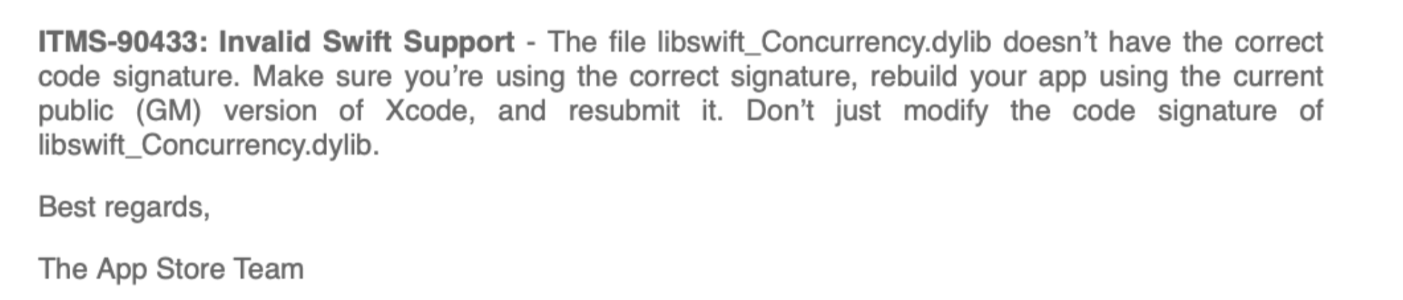 In our project setup we have Main App and our code base is divided into Module using Framework, Recently in one of our framework we write some code using swift async-await API. After that