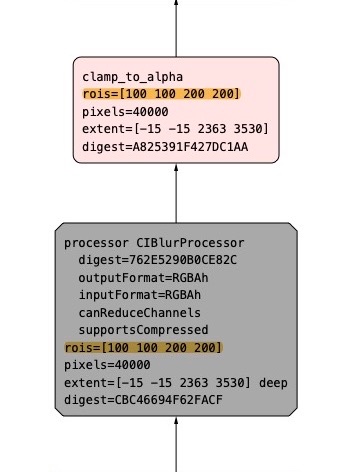 Now to my problem: Core Image can also cache intermediate results of a filter chain. In fact, it does that automatically. This improves performance when, for example, only changing the parameter of a filter in the middle of the chain and rendering again. Then everything before that filter doesn't change, so a cached intermediate result can be used.