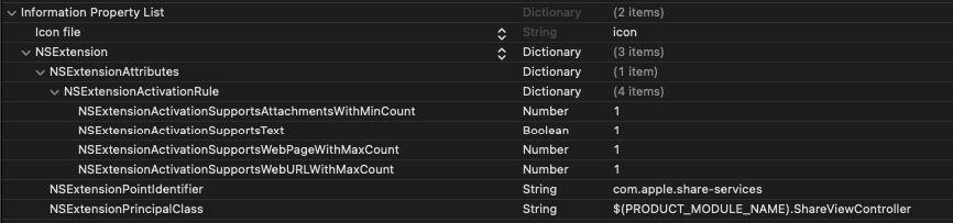 For some reason the Share Extension only appears in the menu when I am on the desktop folder, though it is working fine with text and and web pages.