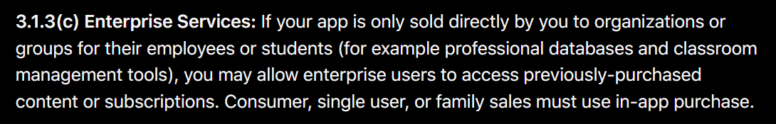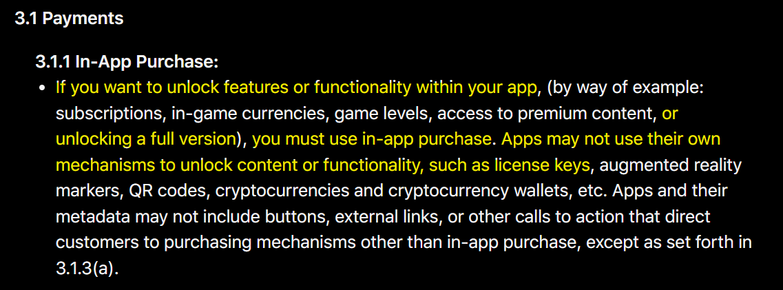 New App Store Review Guideline - 3.1.1 In-App Purchase