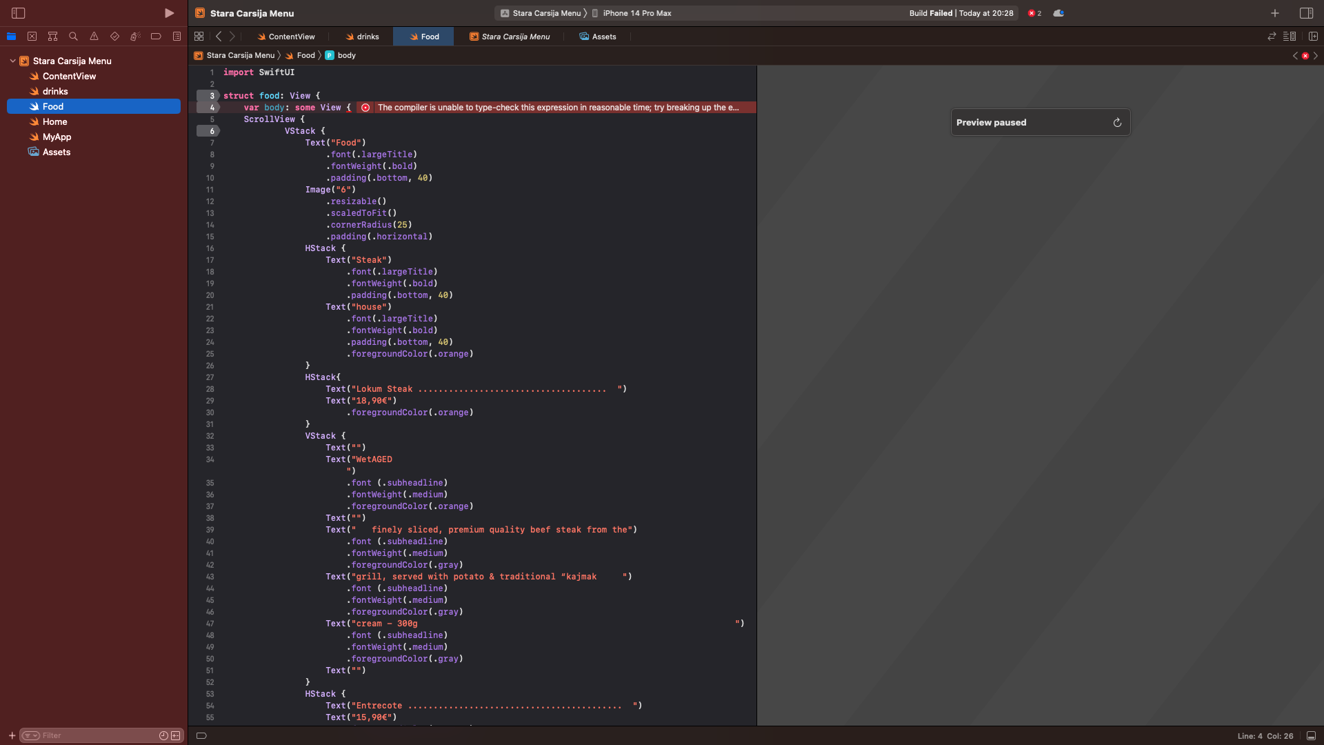 What does "The compiler is unable to type-check this expression in reasonable time; try breaking up the expression into distinct sub-expressions" mean?