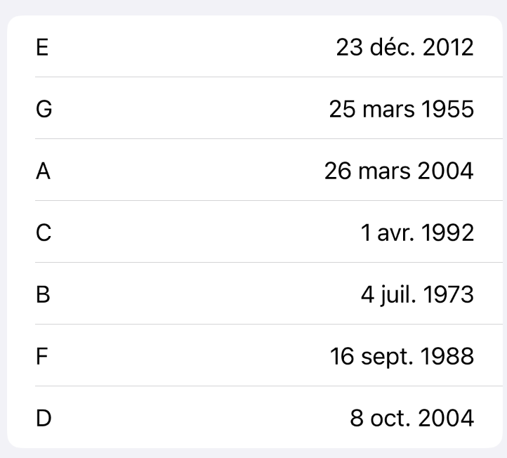 let cFriend = Friend(name: "C", bday: formatter.date(from: "1992/04/01") ?? Date())