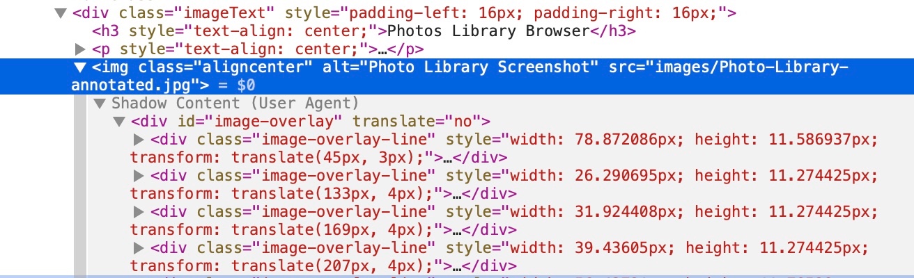 You can see how the text is duplicated and sometimes just wrong. Also, in the page source at the bottom of the screenshot you can see a shadow overlay (I expanded that to show the "translation" stuff in a second screenshot)