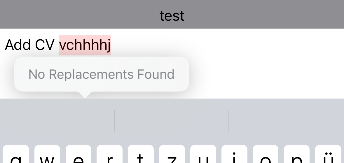 This is working fine, except for one edge case: Text replacement (or correction, I'm unsure about what this feature is called). If the user has entered a wrong word (it is underlined in red), then taps on that word, it is highlighted in red, and a popup with possible replacements is shown.
