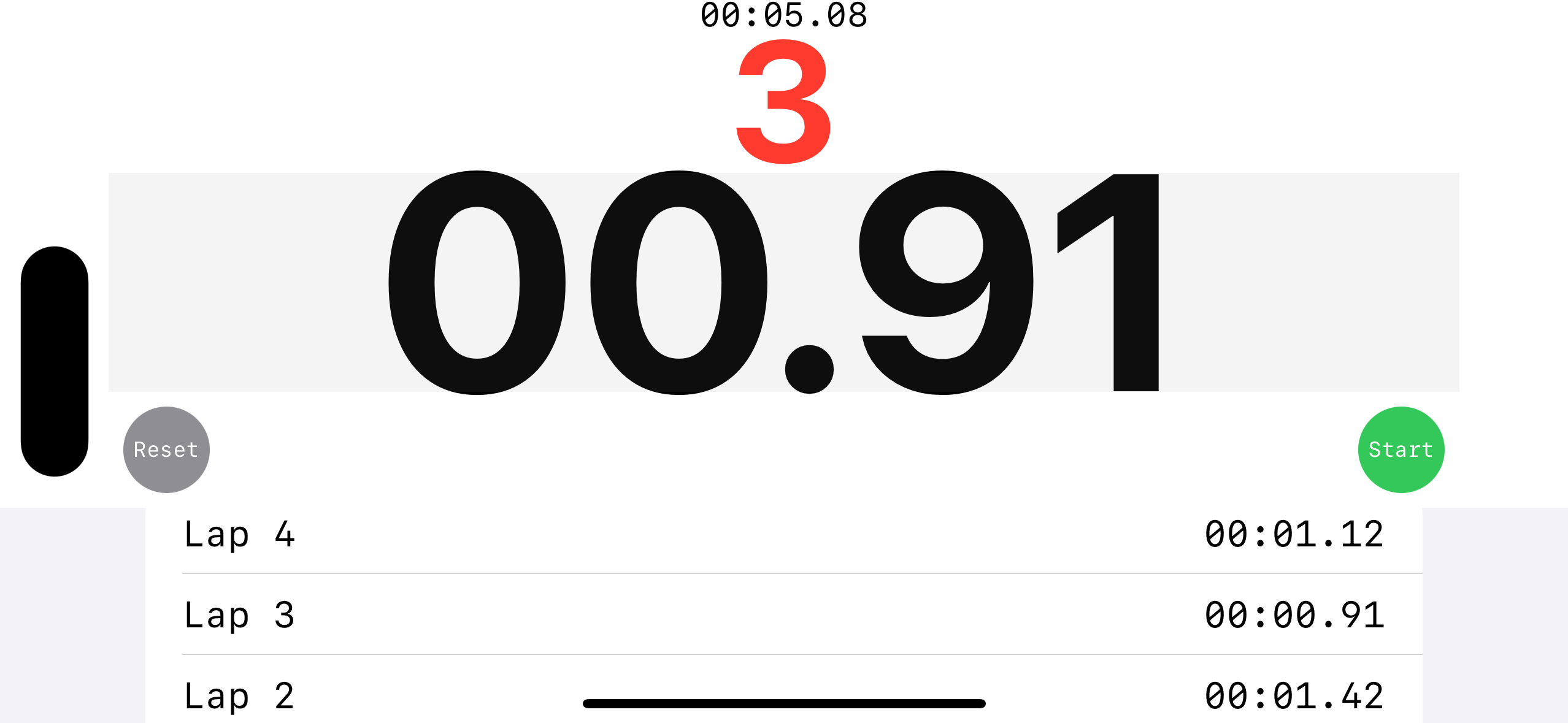 LapTime(n: self.lapCount, m: self.lapMinutes, s: self.lapSeconds, c: self.lapCentiseconds)