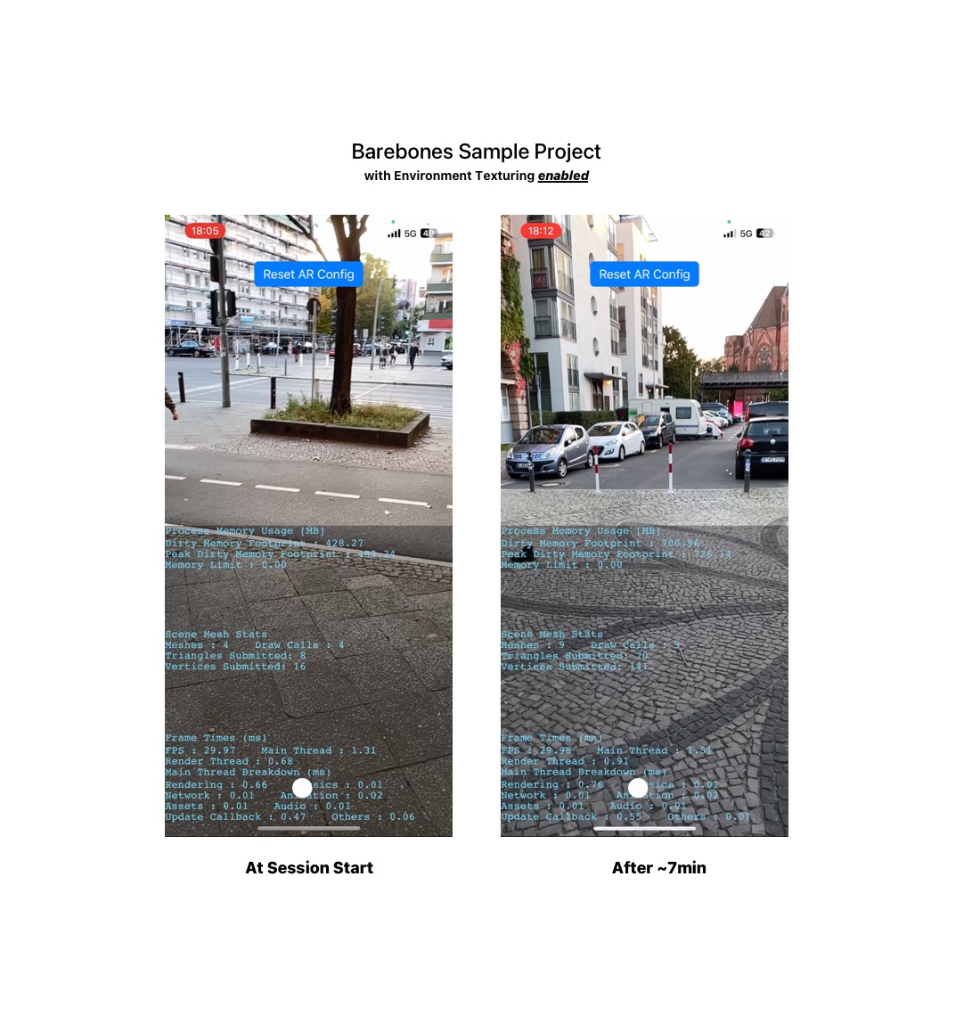 I've seen cases where users walked around for a while and the app eventually crashed because of this. When environment texturing is disabled RAM usage pretty much stays the same, no matter how far I walk.