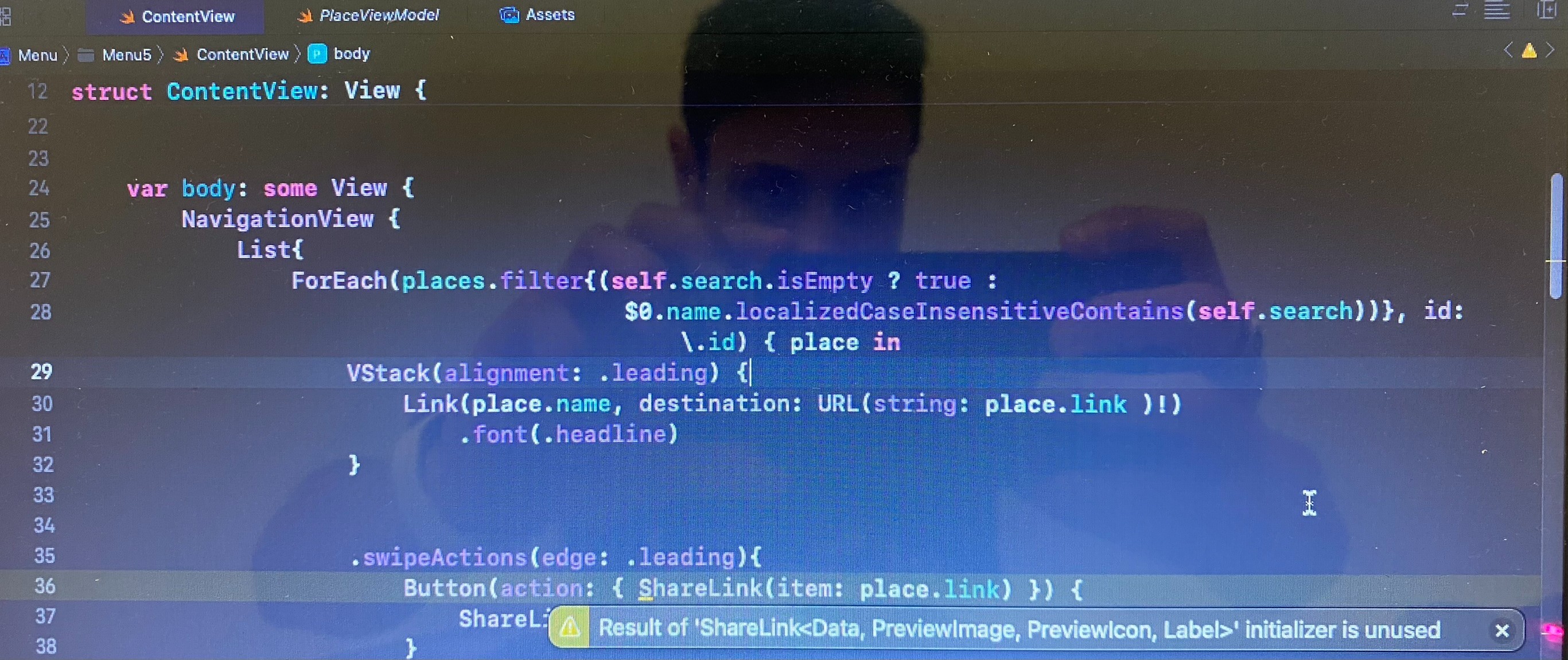 When I creat this swipeActions, an error appears saying "Result of 'ShareLink<Data ,PreviewImage, PrevieIcon, Label>' Initializer is unused.
