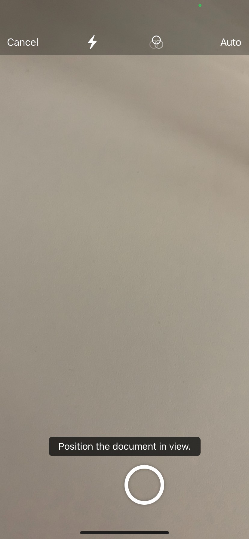 The button, to manually capture the document, is not centered and does not work. Selecting it has no result and there is no highlighted state.