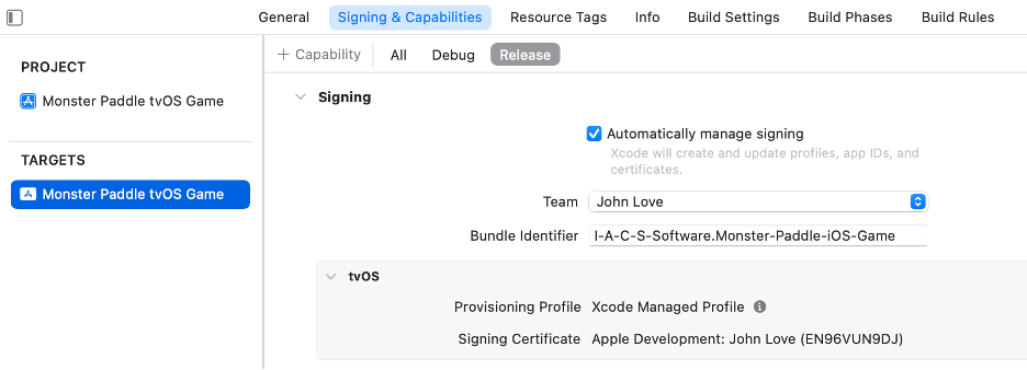 Yet in spite of all the above evidence, here is a screen shot of my Target for both my iOS and tvOS Project: