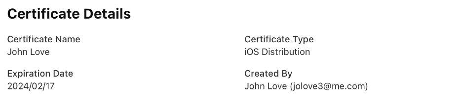 Here is the screen shot when I double-click on the iOS Distribution Certificate above: