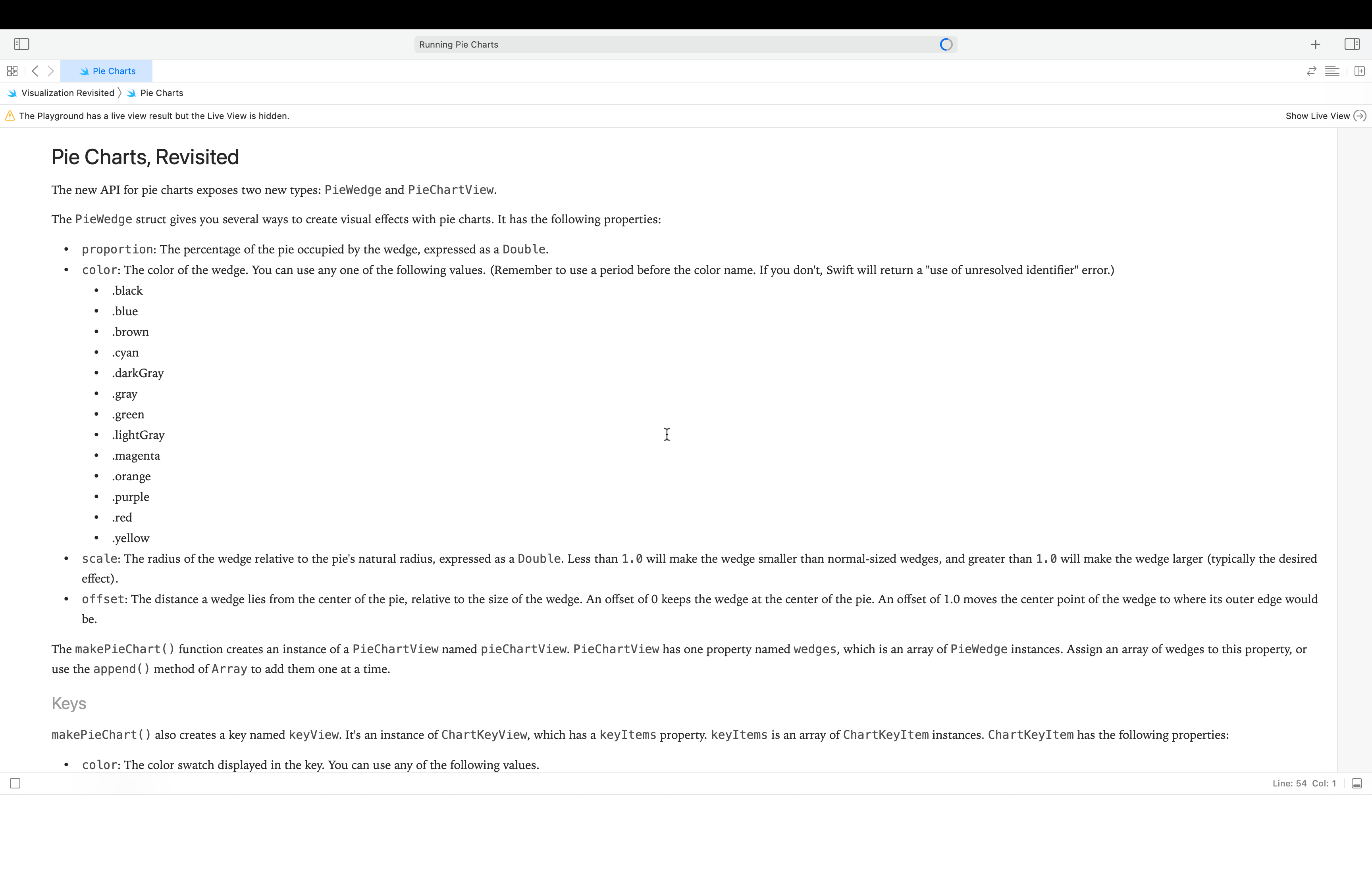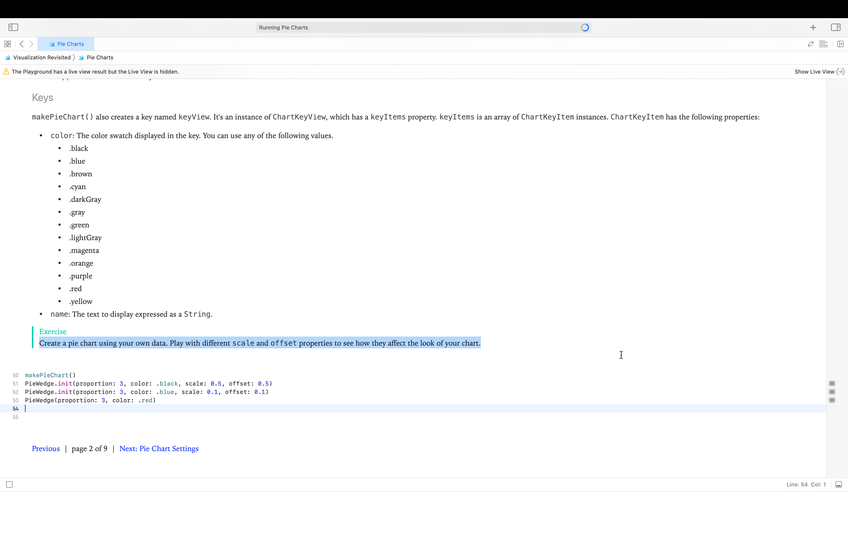 @ssmith_c , I have taken a alternative route to the solution but all im getting, in the liveview, is a blank white rectangle and no piechart. Could this be something to do with how I'm calling the makePieChart() Function built into the playground? seems like it has no data to draw the graph from. your advise would be very welcome. Code below