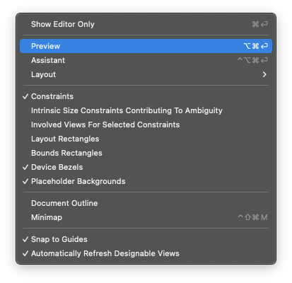 Where is the Preview function in Xcode Version 14.2 (14C18)?