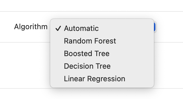 does anyone know if the CreateML app has a way to build Support Vector Machine models for tabular regression? I see only the attached options. xcode14.2