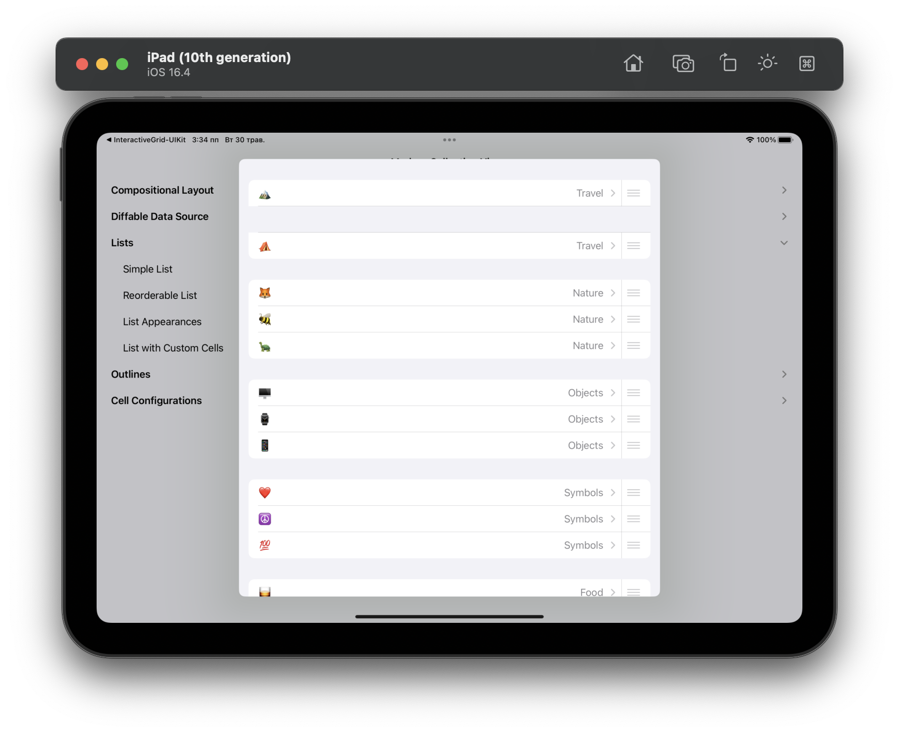 self.present(viewController.init(), animated: true) you will see that at some point when reordering, some cell will disappear.