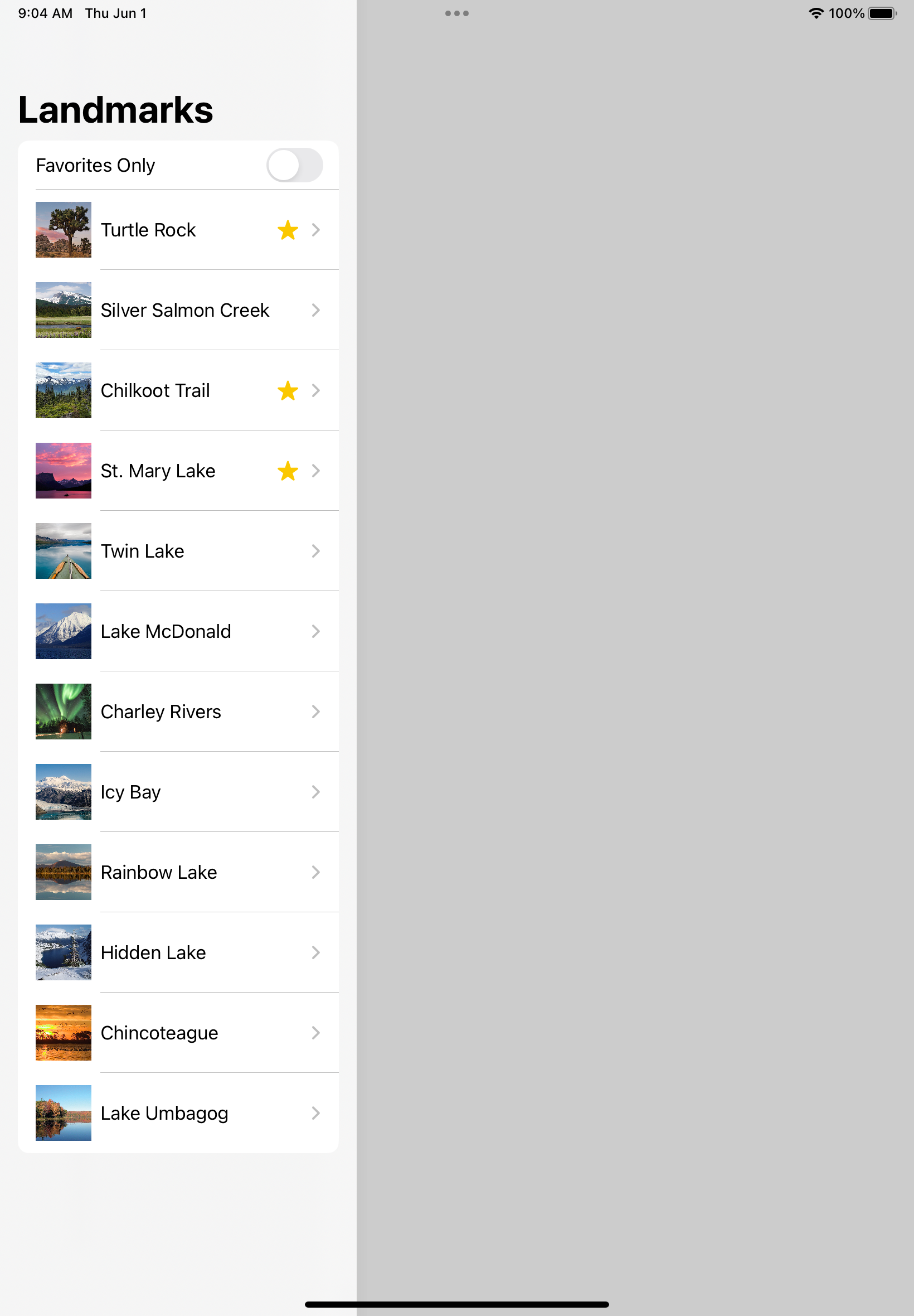 I’m new to swiftUI. I’ve been following this tutorial (https://developer.apple.com/tutorials/swiftui/building-lists-and-navigation) and everything was OK until I ran it into iPad (10th Generation).