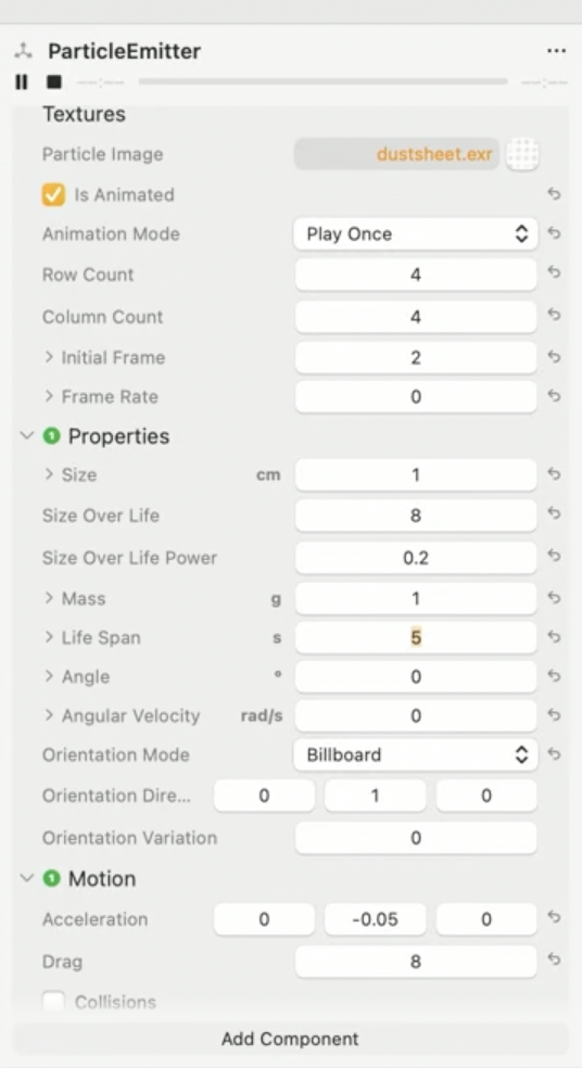 I can't seem to find it in my build of Reality Composer Pro and can't seem to find another way to allow for collisions on the particles of the ParticleEmitter.
