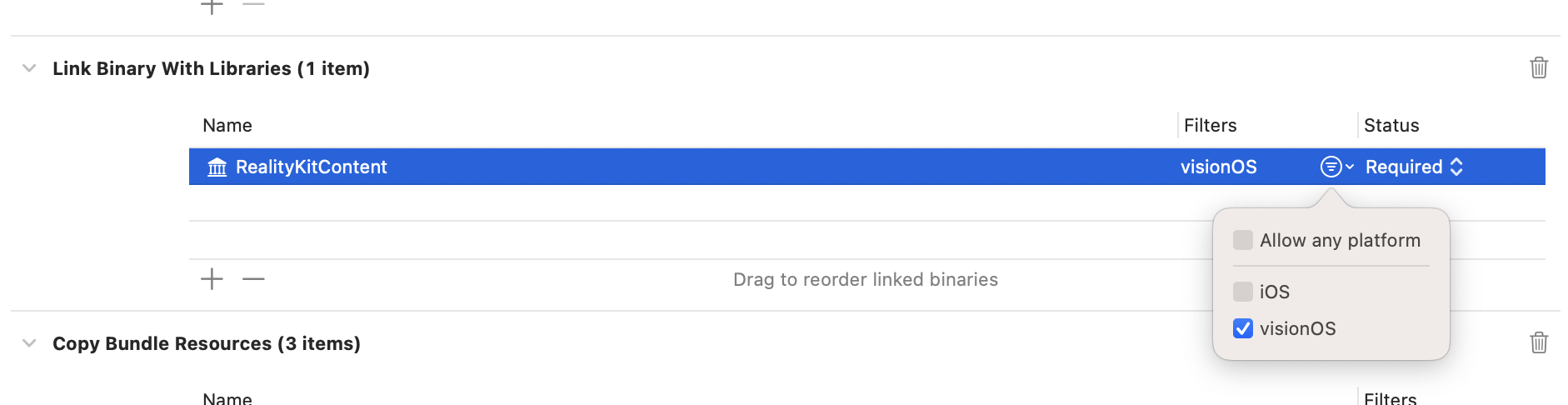 It seems that Xcode Preview is ignoring the link settings and attempt to build RealityKitContent.rkassets on iOS.