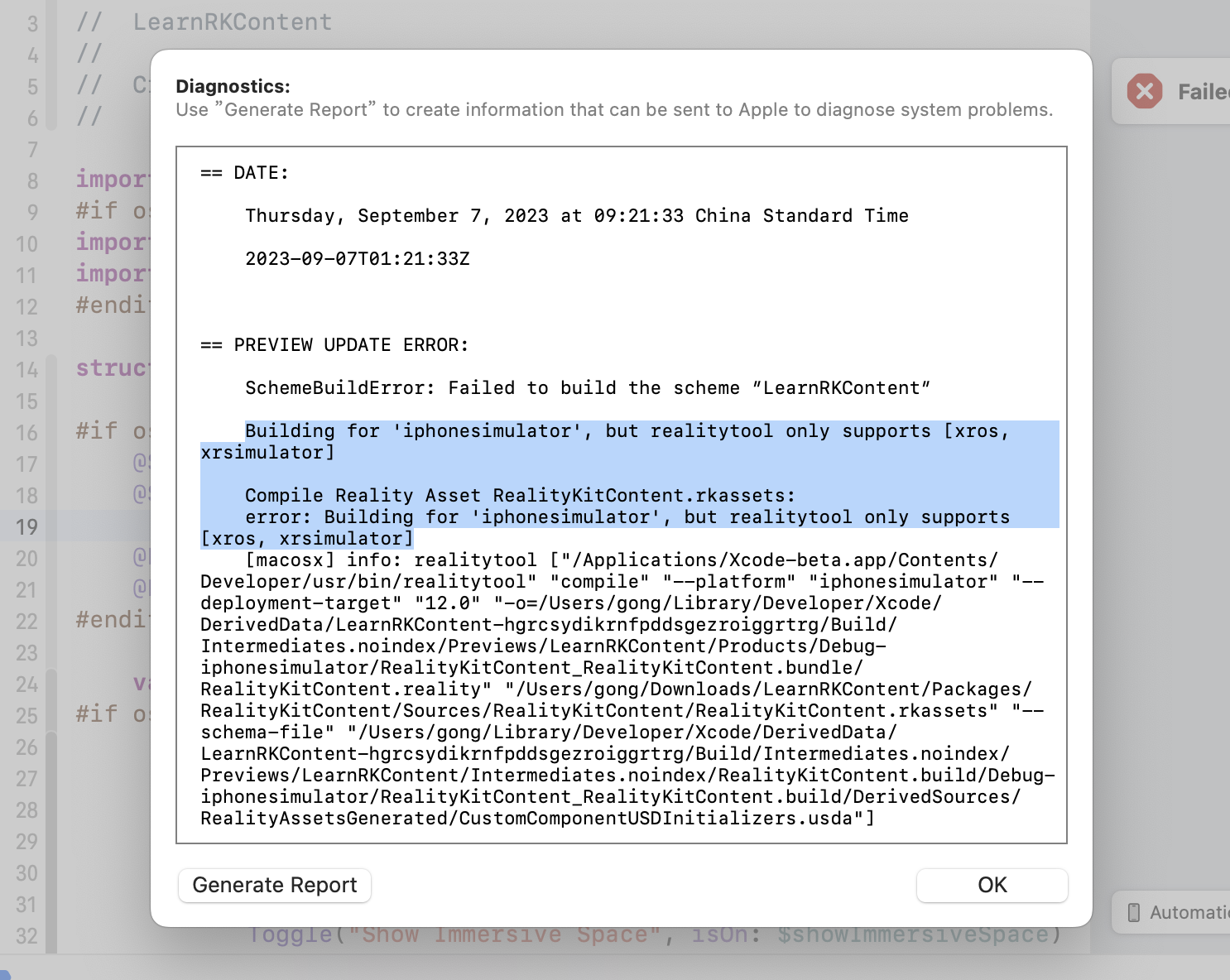 ContentView.swift(failed due toRealityKitContent.rkassetsissue)