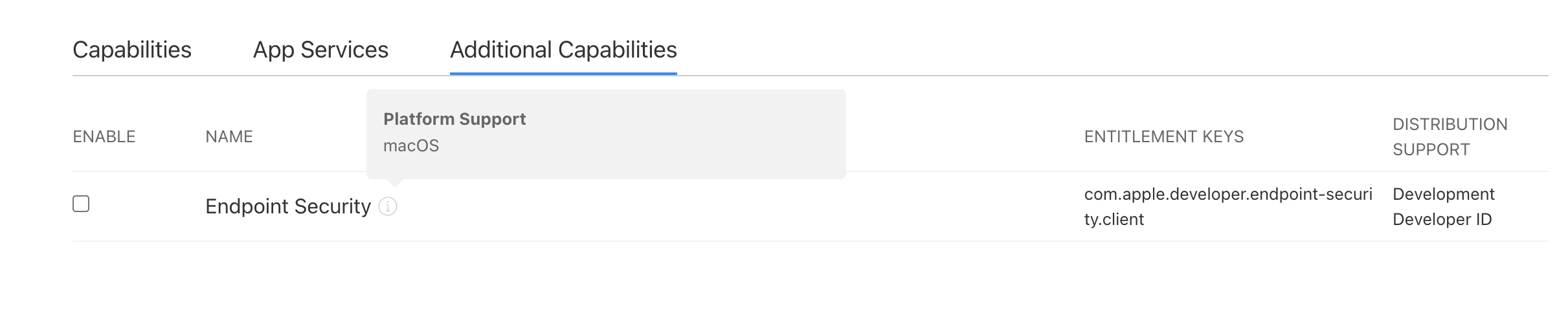 Non existent Endpoint Security Entitlement