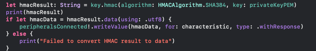 i am able to get 64 byte signature data which is required by client to send over server but my peripheral firmware is disconnecting when writing signature which i don't want and if i want to connect again then i have to press reset button so far.