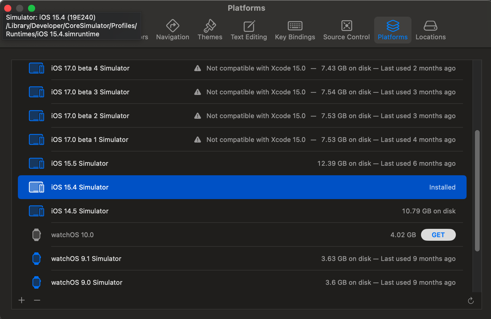 I'm using Xcode 15.0 (15A240d) and I need to test some code on iOS 15. I'm unable to create a new iOS 15 simulator.